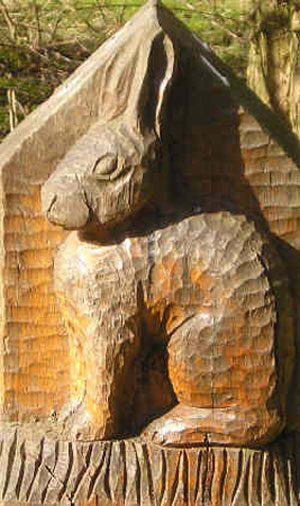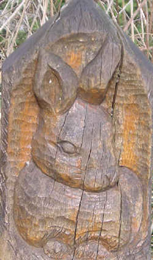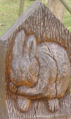 A few of the waymarkers. There are many different carvings of the Rabbit, Owl and Frog, marking each trail in the park.
